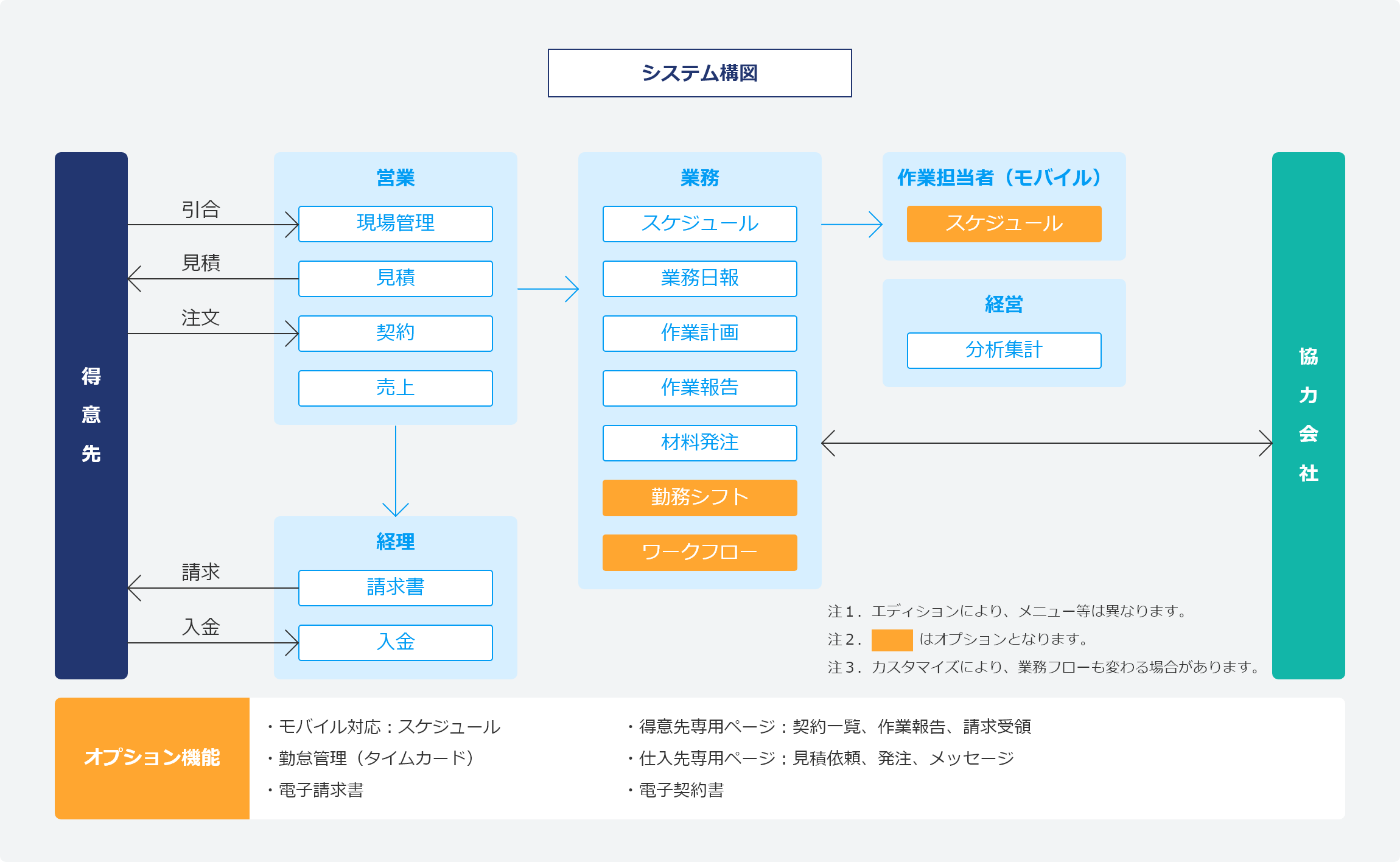 営業・業務・経理すべての業務が一気通貫され、情報の共有化や業務効率化が実現します。