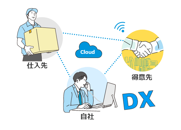 クラウドシステムだから、利用環境や得意先/仕入先などの連携DXが実現できます。